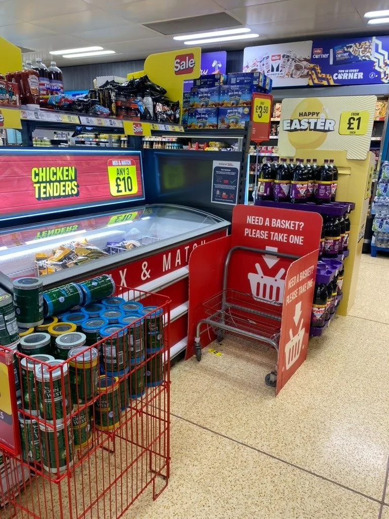 Research shows basket visibility drives up to 25% higher spend. Yet we consistently see baskets tucked past the entrance, nested in tight stacks, or positioned where operational logic dictates, near exits for returns, rather than where behavioural salience demands.